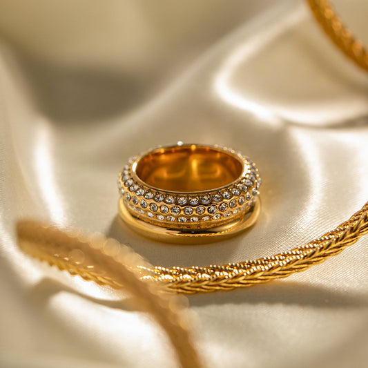 Luxury Gold Pavé Ring - Sparkling Crystal Statement Band