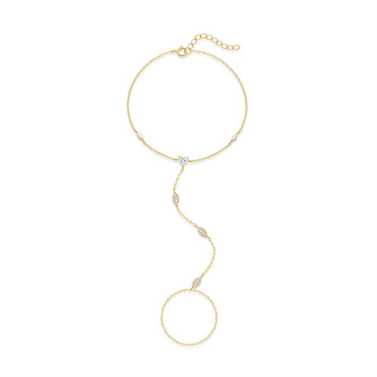 Gold Hand Chain Bracelet - Delicate Finger Ring Bracelet with Crystal Accents