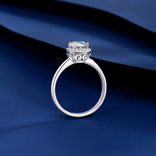 Classic Halo Engagement Ring - Sterling Silver Cushion Cut Solitaire