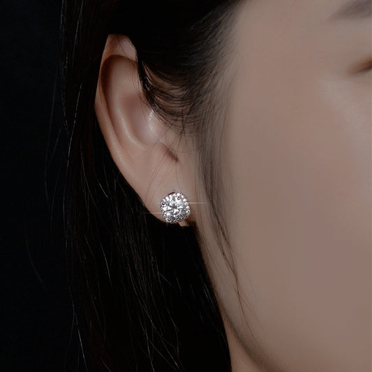 Round Brilliant Solitaire Stud Earrings - Sterling Silver CZ Diamond Studs